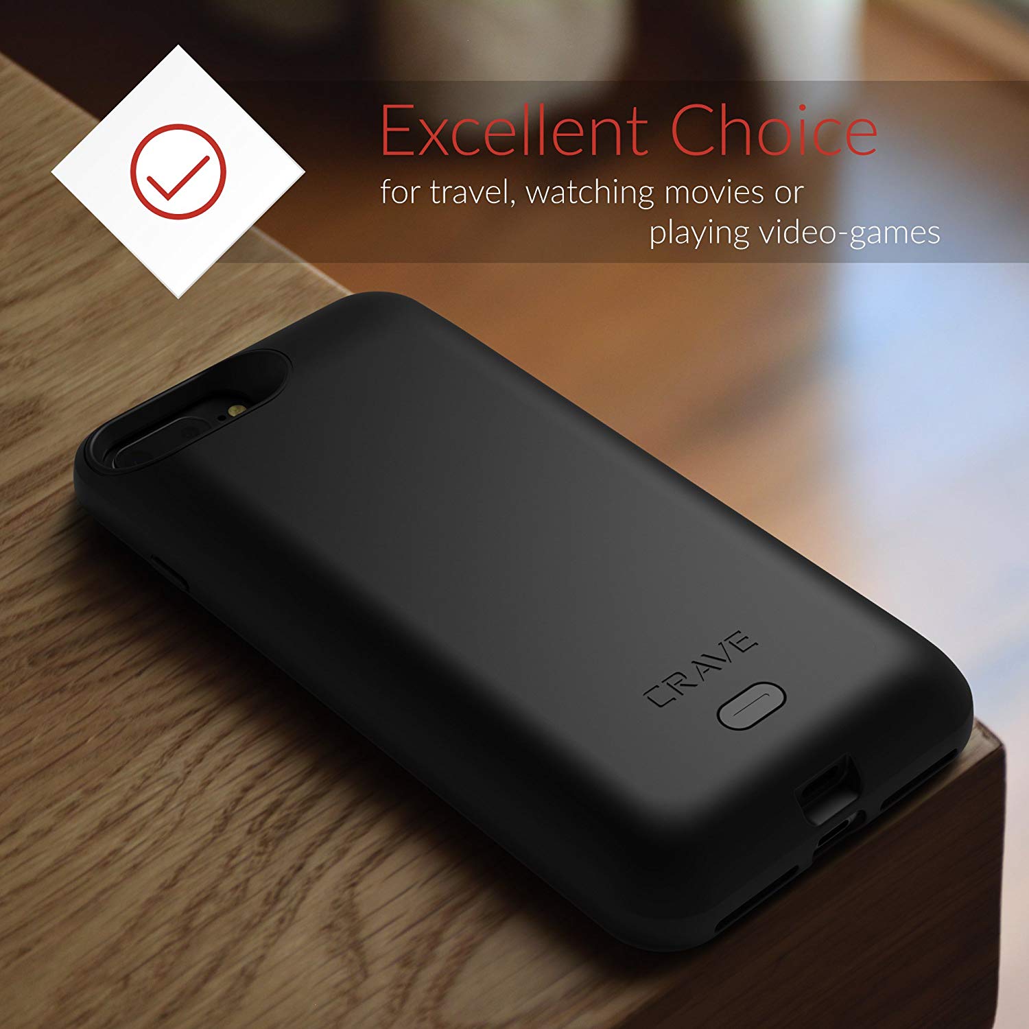 iPhone 8 Plus Battery Case, Crave PWR Case 4000mAh, Qi Wireless Charging Battery Extended Portable Charger Case for iPhone 8 Plus – Black
