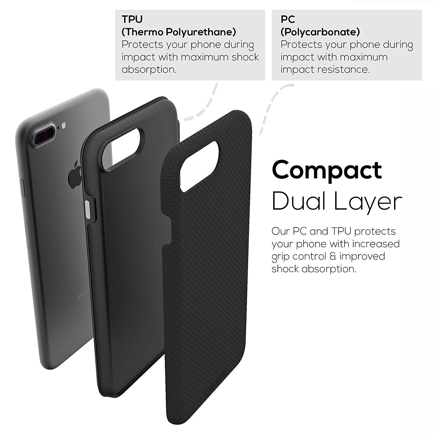 ADVANCED DUAL LAYER PROTECTION: The Crave Dual Guard Apple iPhone 8 / 7 Plus Case is designed with dual layer technology that protects your cellphone from drops and shocks with a layer of high-grade polycarbonate (PC) and one of thermo polyurethane (TPU).