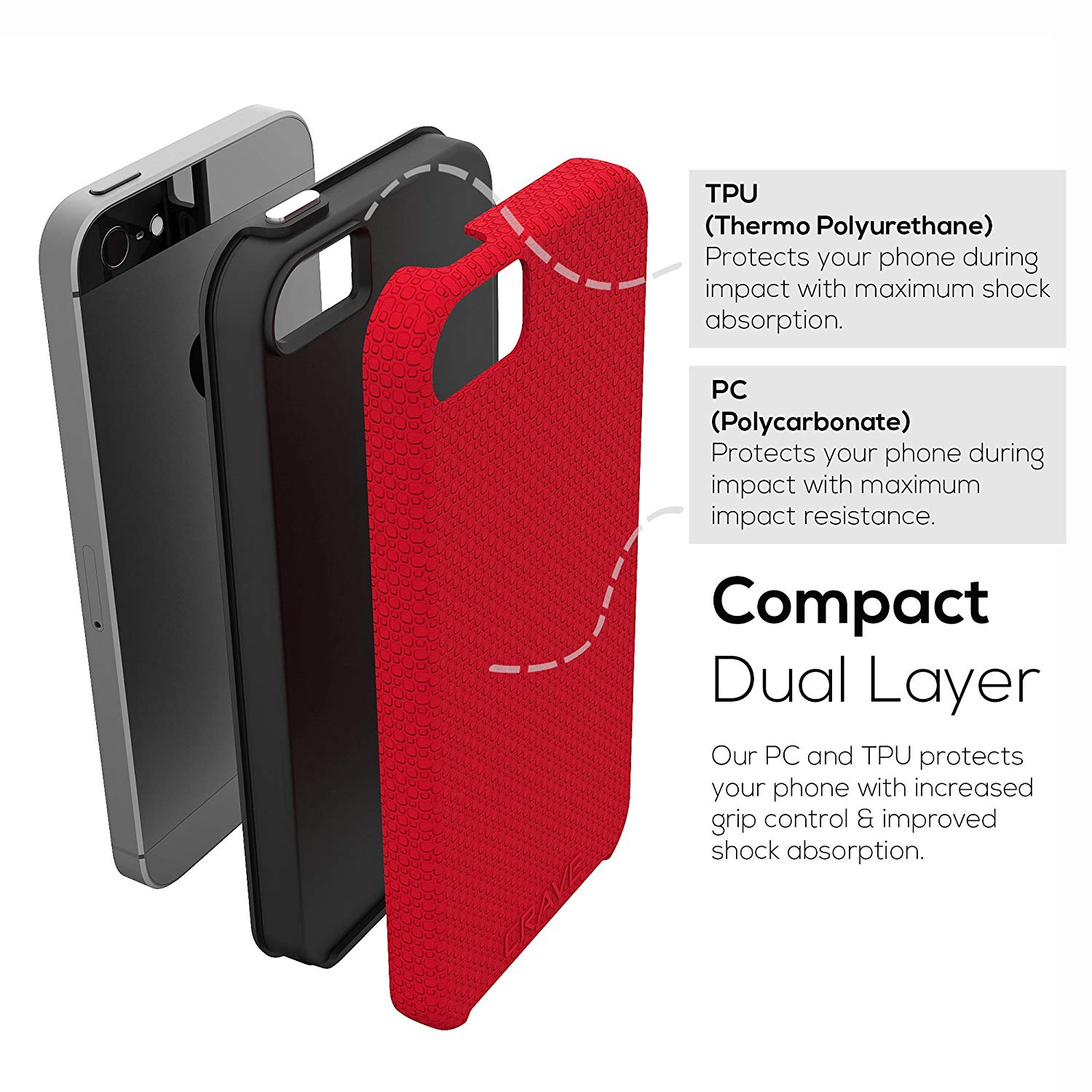 ADVANCED DUAL LAYER PROTECTION: The Crave Dual Guard Apple iPhone SE Case is designed with dual layer technology that protects your cellphone from drops and shocks with a layer of high-grade polycarbonate (PC) and one of thermo polyurethane (TPU).
