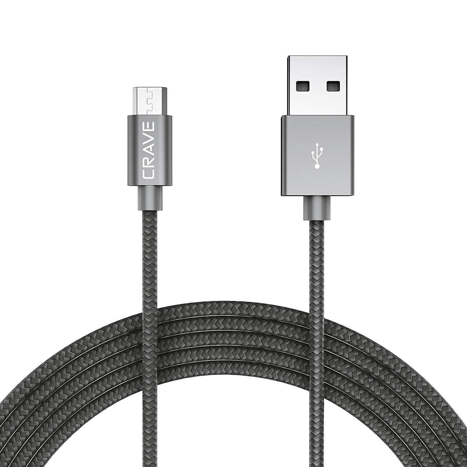 Micro USB Cable, USB to Micro connection - Crave Premium Nylon Braided High Speed USB 2.0 Cable 3 FT - SLATE