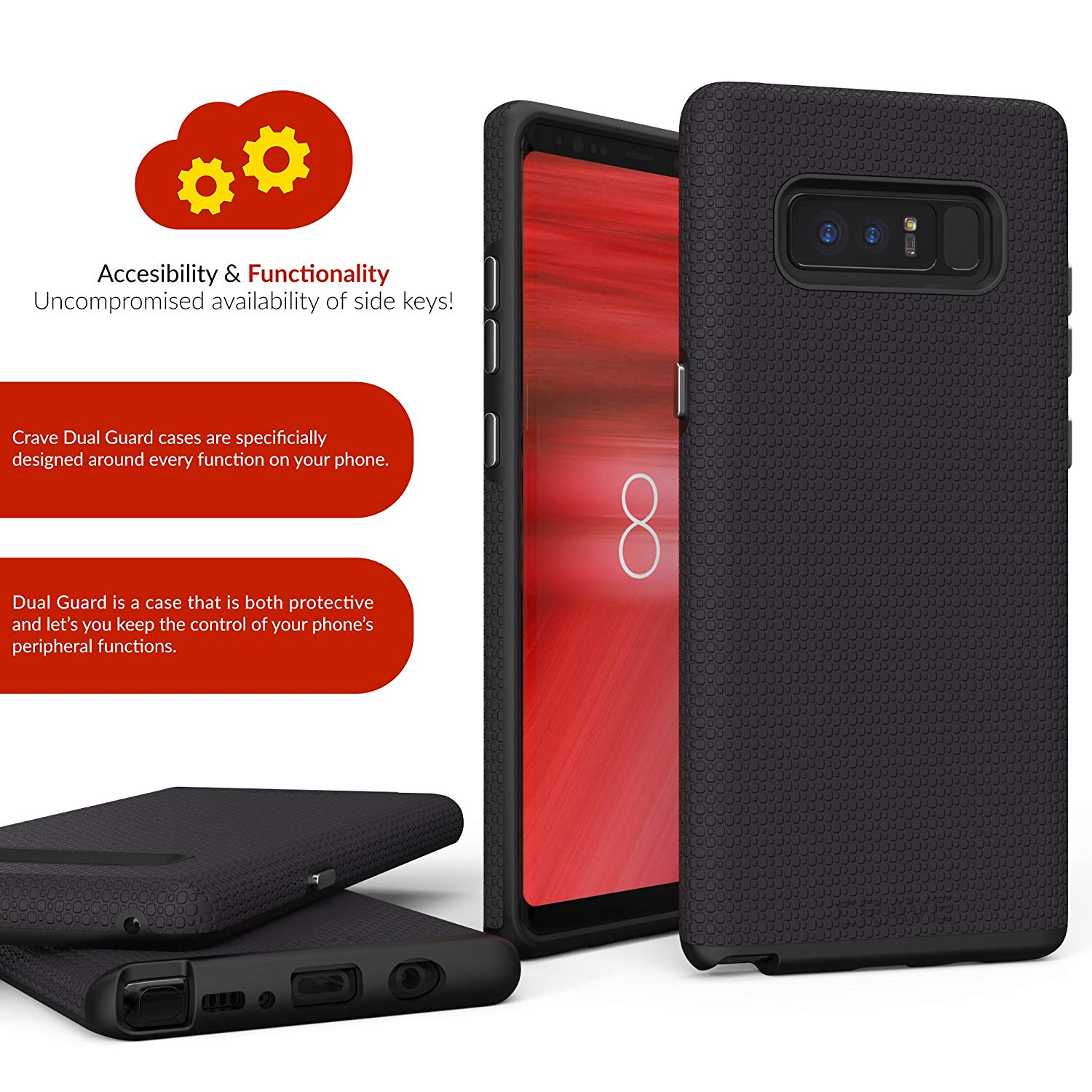 ENHANCED RUBBER GRIP: We designed the Crave Dual Guard to not only be more durable than your average Samsung Galaxy Note 8 case, but to also give your fingers and hands more tactile control while making calls, texting or reading the news.