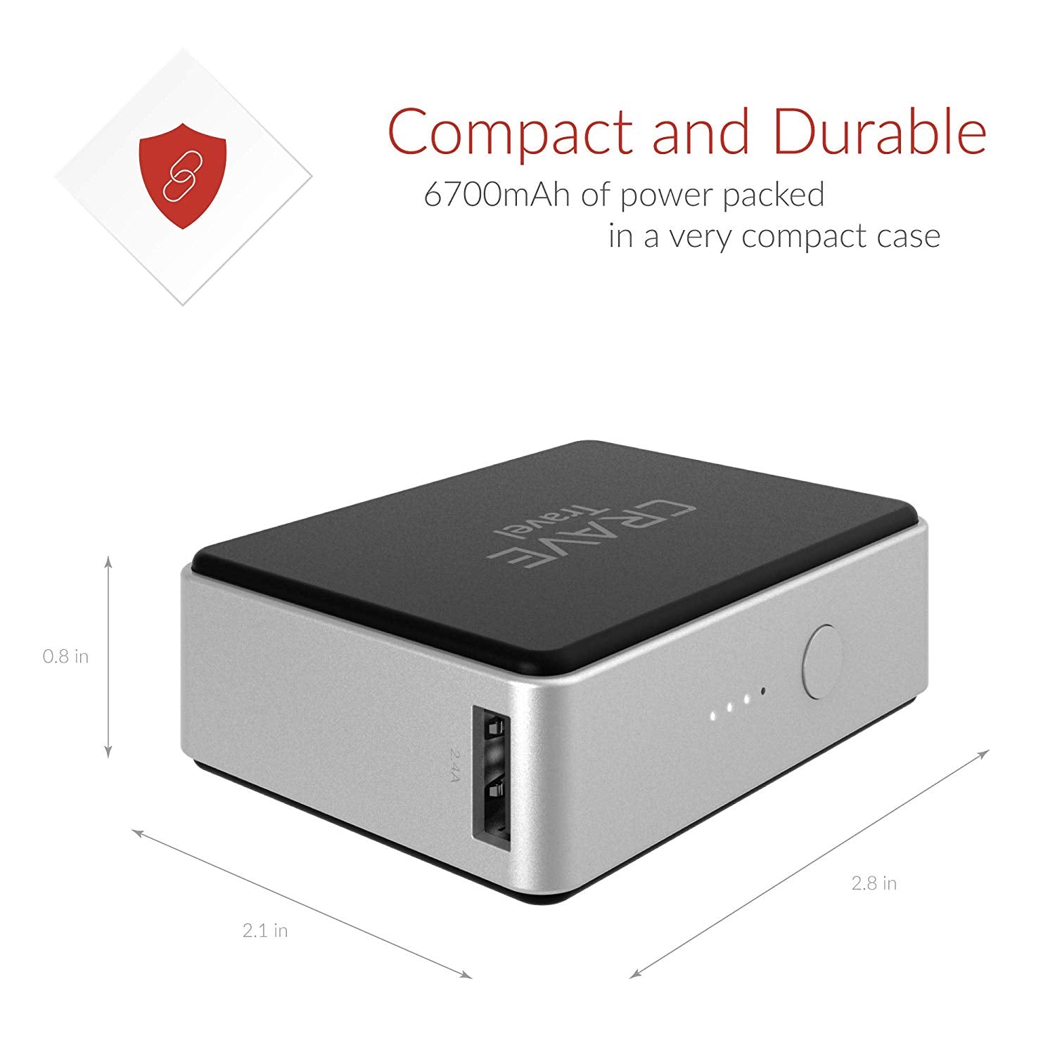 BLAZING CHARGE TIME: At 6700mah, you can charge your devices to full quickly and efficiently. Not only that, but each fully-charged Crave external battery power bank can charge your smartphone from 0-100% battery power two times!