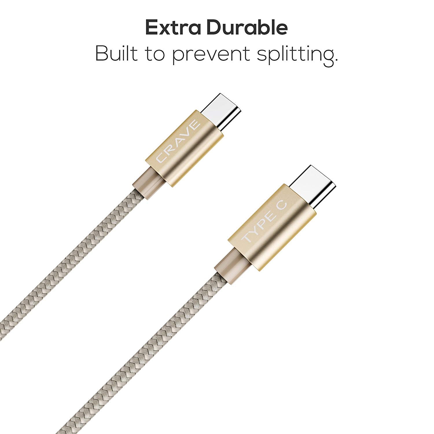 Type C Cable, Type C to Type C Cable - Crave Premium Nylon Braided High Speed 2.0 Cable 3 FT - Gold